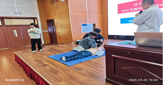 3月12日下午,二院急救分站到阜阳幼儿师范高等专科学校学术报告厅开展“雷锋纪念日——‘救’在身边”应急救护培训。吴龙飞医生和大家分享了徒手心肺复苏术(CPR)、自动除颤仪(AED)的使用方法和气道异物梗阻急救法,利用模拟人进行演示操作,并指导同学们实操练习。