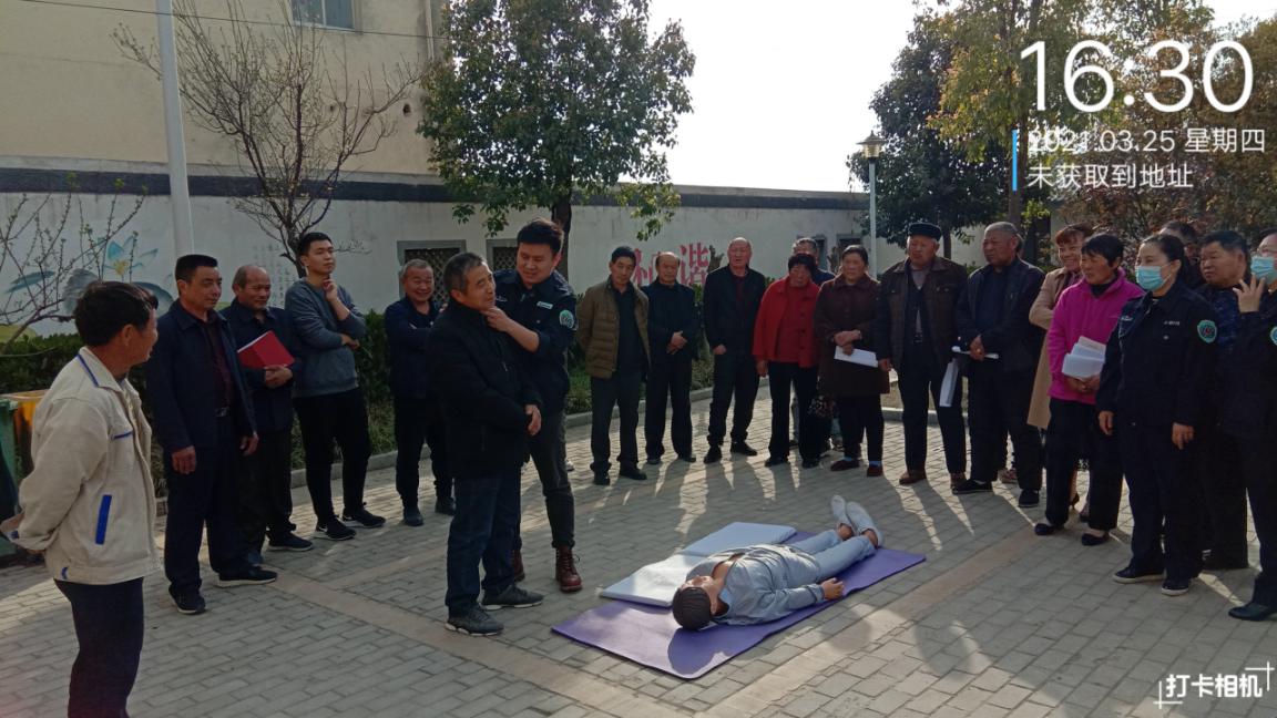 3月25日下午,市医院急救分站急救科普团队一行来到颍州区袁集镇大朱村委会开展急救知识与技能普及活动,村委会干群约30余人参加。