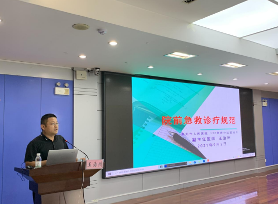 为提升院前急救人员应急技术和综合素质能力,9月2日-3日,太和县120急救中心特邀阜阳市紧急救援中心副主任田光宇一行5人来院开展院前急救岗位技能培训,太和县人民医院院长赵曙光出席,全院从事急救工作的医生、护士、驾驶员、调度员参加,会议由县人民医院副院长贾雪峰主持。