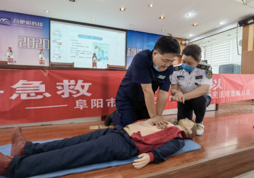 高温酷暑时节,为增强铁路职工防暑降温意识,普及应急救护知识,6月8日,阜阳市第四人民医院120急救分站走进上海铁路集团公司合肥机务段阜阳运转车间,开展防暑降温相关知识培训。 培训专家围绕高温天气常见的中暑状况、应急处理方法、解暑小妙招、心肺复苏操作手法等方面进行了深入浅出的讲解。 同时为了使大家更好地掌握心肺复苏的技术要点和正确操作手法,医务人员利用模拟人进行现场演示,指导员工进行操作演练,让员工真正掌握心肺复苏的救护技巧。宣讲专家们精彩的讲解,耐心、细心的指导,赢得现场人员的阵阵掌声。