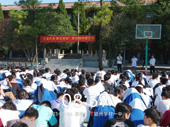 在新学期开学之际,为树立新同学敬畏生命、关爱他人的理念,掌握基本急救知识技能,培养自救互救和自我保护能力,2023年9月6日上午,市医院120急救分站侯芳护士长带领急救医生吴奇、张发兵、护士刘恒雪一行,到阜阳市颍州学村一中为高一新生开展急救知识技能科普活动,五百多名新生和老师参加了此次培训,取得了良好的效果。