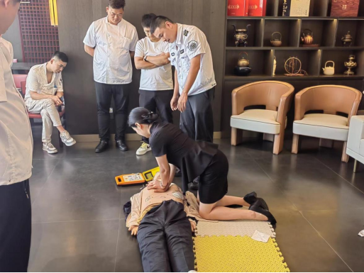 7月3日,六院急救分站急救人员分别来到鼎元宋悦酒店和假日酒店,对酒店工作人员进行急救知识培训。现场以理论知识及操作示范相结合的方式,向大家普及了心肺复苏和AED的操作方法,并指导参训人员进行实践操作。