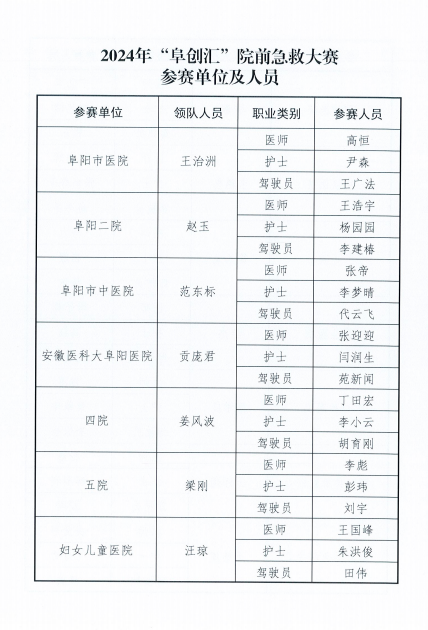 2024年阜阳市院前急救技能竞赛队伍名单公示.pdf